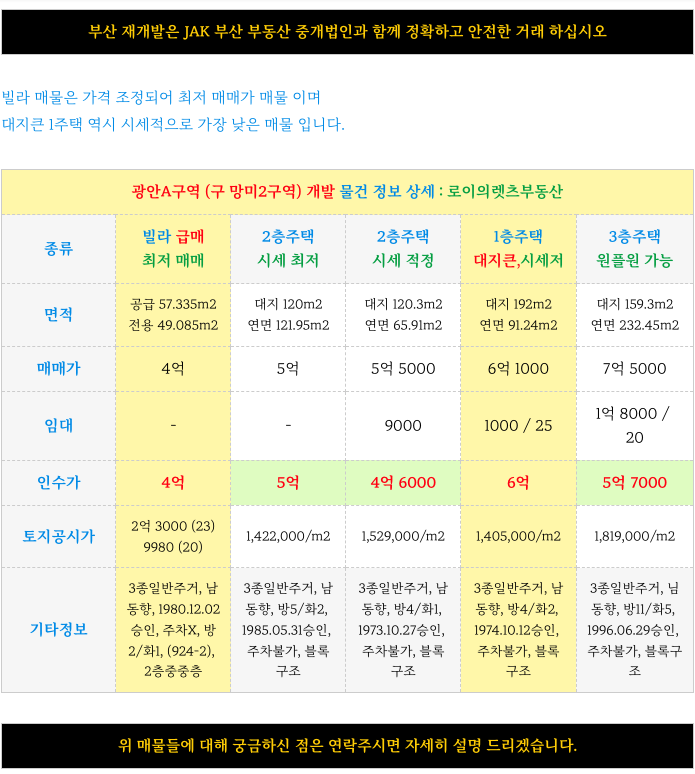 부산 전역 재개발에 대해 궁금하신 사항은 방문 또는 연락주시면 자세히 설명드리겠습니다.