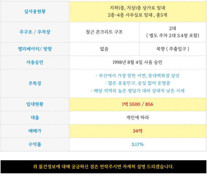 서면 롯데백화점 후문 상권 4층 올근생 상가 건물 빌딩 매매 정보 소개해 드리겠습니다.