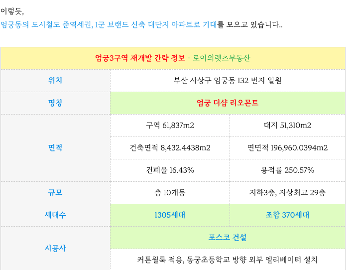 안녕하세요 JAK 제이에이케이 부산 ( 로이의렛츠부동산 ) 입니다. 오늘은 더샵 리오몬트 엄궁3구역 재개...