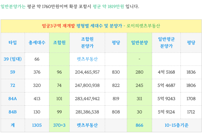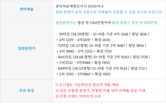 이제는 볼수 없는 낮은 조합원 분양가 역시 메리트가 큽니다.