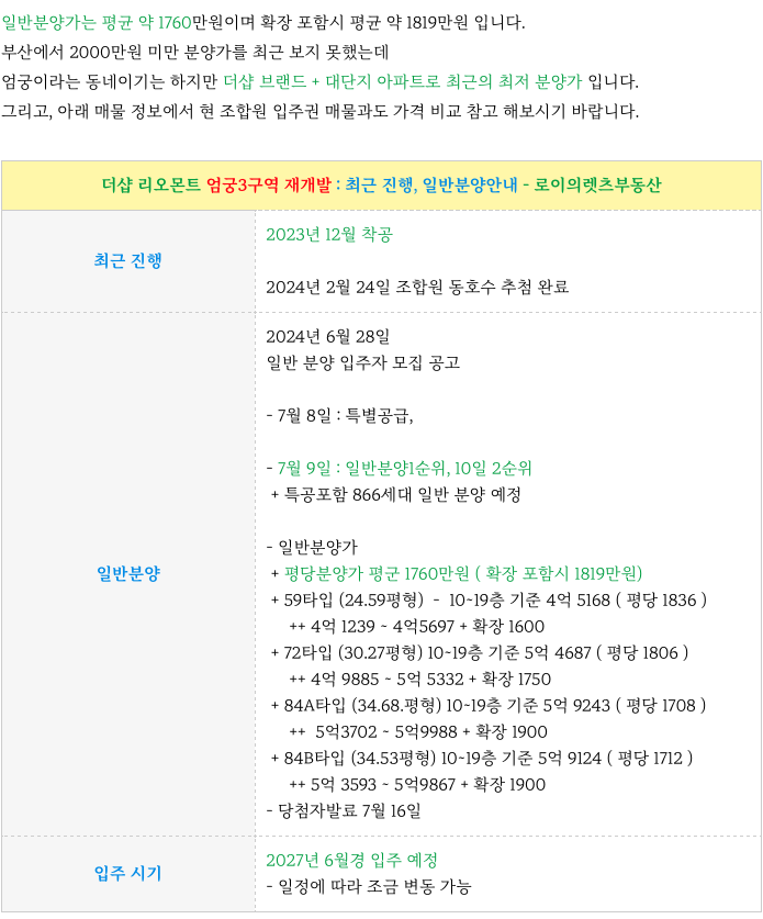 (더샵 리오몬트) 엄궁3구역 재개발 : 입주권 매물 소개 및 일분가와 비교 체크 : 일반 분양 일정