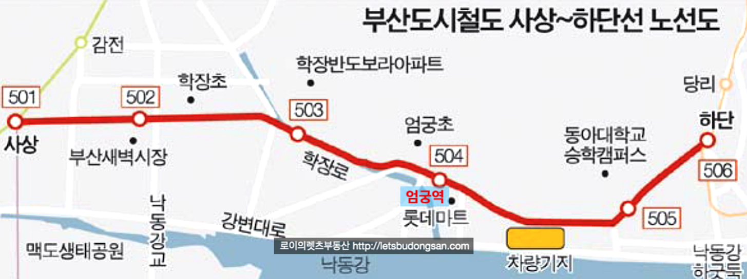 사상에서 하단으로 이어지는 도시철도 사상하단선 엄궁역이 계통을 하게 되면