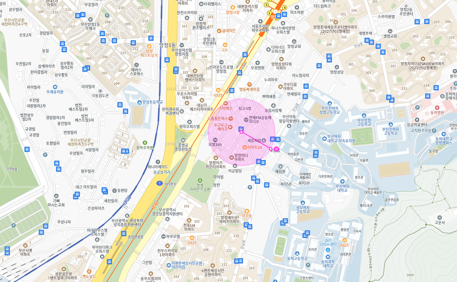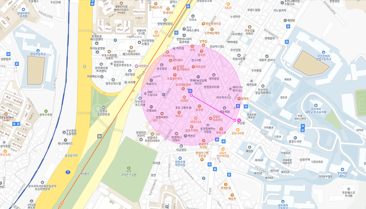 - 양정 동의과학대, 부산여대 올라가는길로 대학생 및 일반 수요 충분