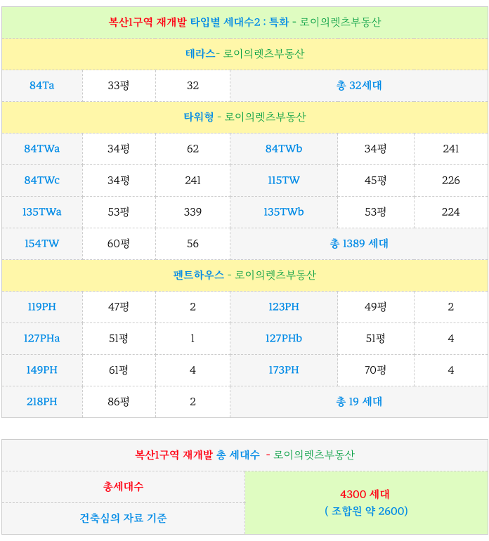 복산1구역 재개발 사시 신청 타입별 세대수 소개해 드리겠습니다.