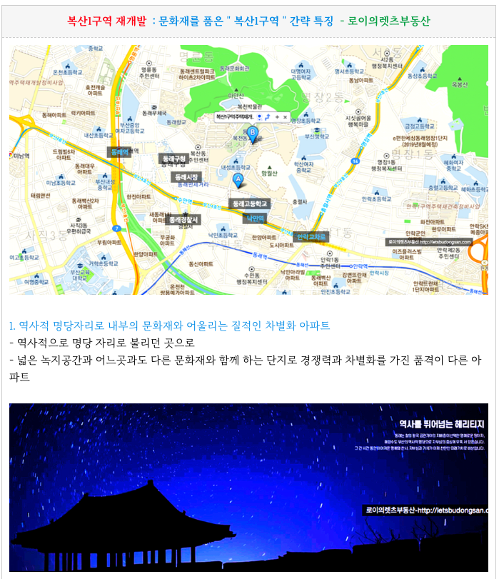 복산1구역 재개발 입지적 주요 특징을 정리하였습니다.