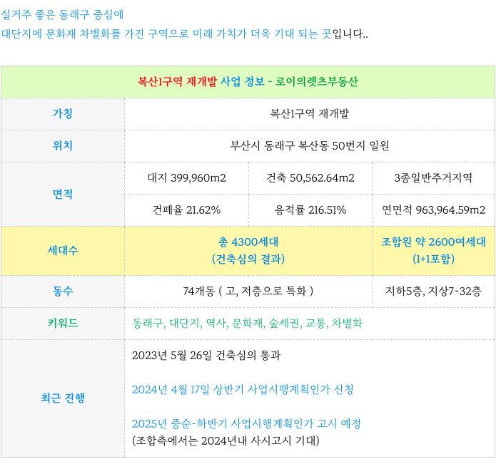 (부산재개발) 동래구 복산1구역 : 진행 최근 소식 & 매물 소개
