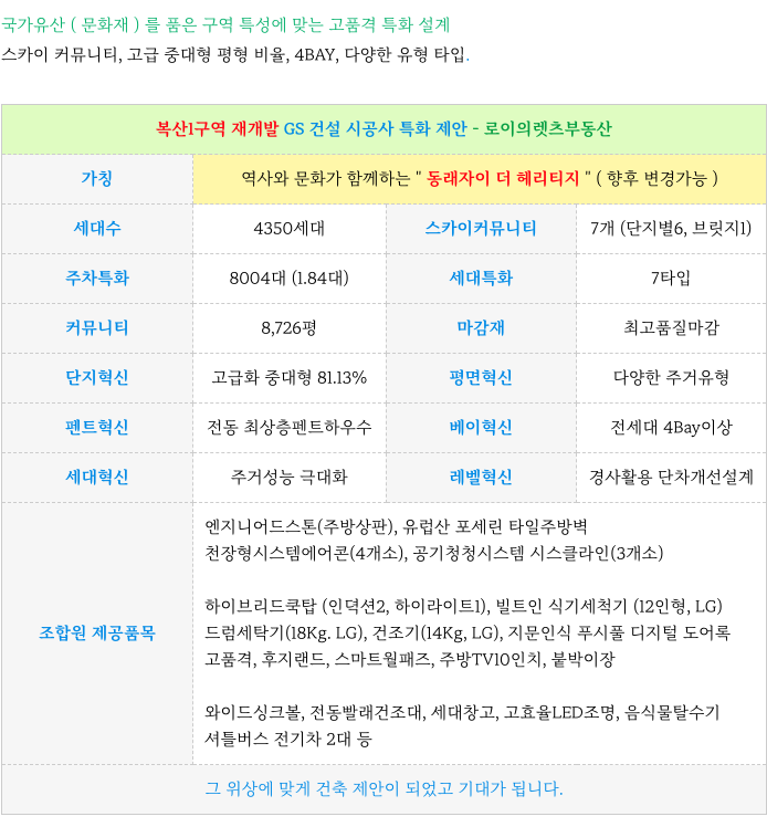 동래 대단지 복산1구역 시공사 GS 건설 제시한 특화 제안 정리 드립니다.