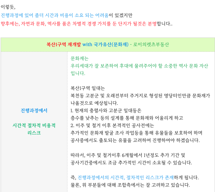 복산1구역 역시 향후 공사 진행중에 문화재 출토 역시 당연히 예상되고 있기에