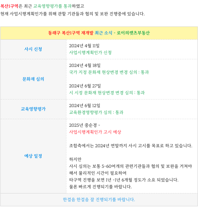 복산1구역 재개발 주요 일자별 진행 사항 그리고 예상 일정 정리등 추가 정보는 아래 페이지를 참고 부탁드립니다.