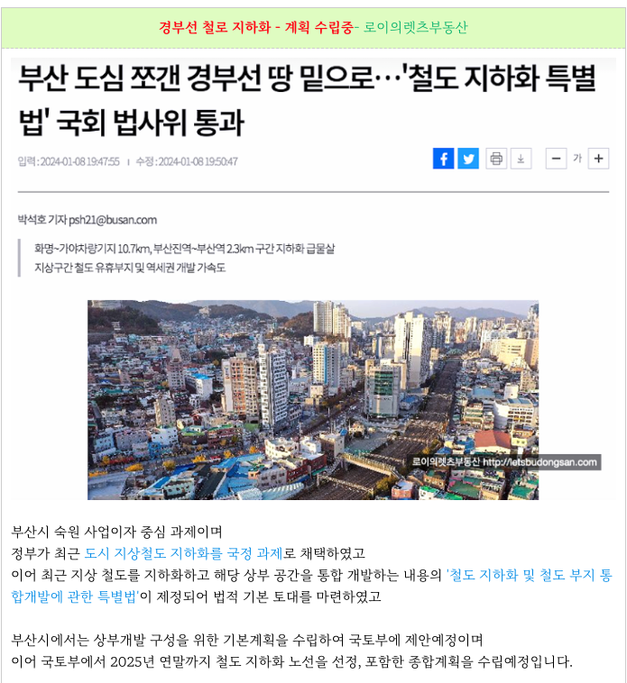 부산시 및 정부에서 경부선 철도 지하화의 의지를 보이며