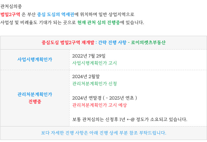 역세권 범일2구역 재개발 주요일자별 진행사항과 향후 일정 정리등 추가 정보는 아래 페이지를 참고 부탁드립니다.