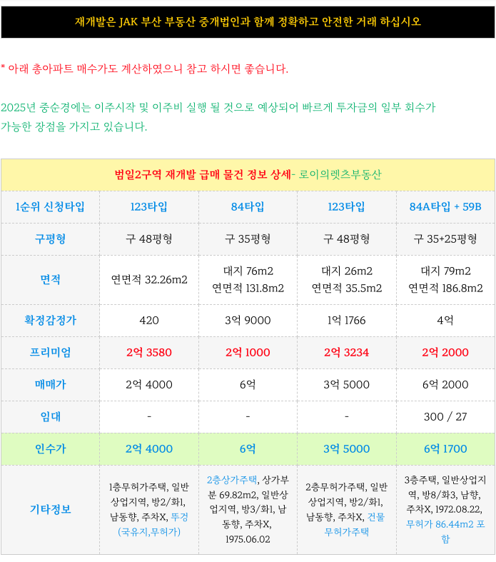 부산 전역 재개발에 대해 궁금하신 사항은 방문 또는 연락주시면 자세히 설명 드리겠습니다.