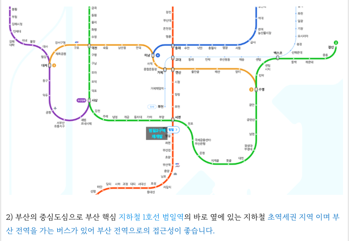 이는 중심도심의 장점으로 부산 전역, 시내외로 교통이 용이합니다.