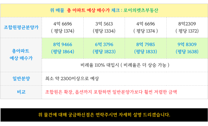 조합원 비율이 낮고 일반 분양 비율이 높아 이를 보완해주는 큰 장점이 됩니다.