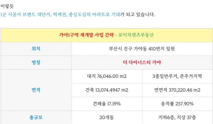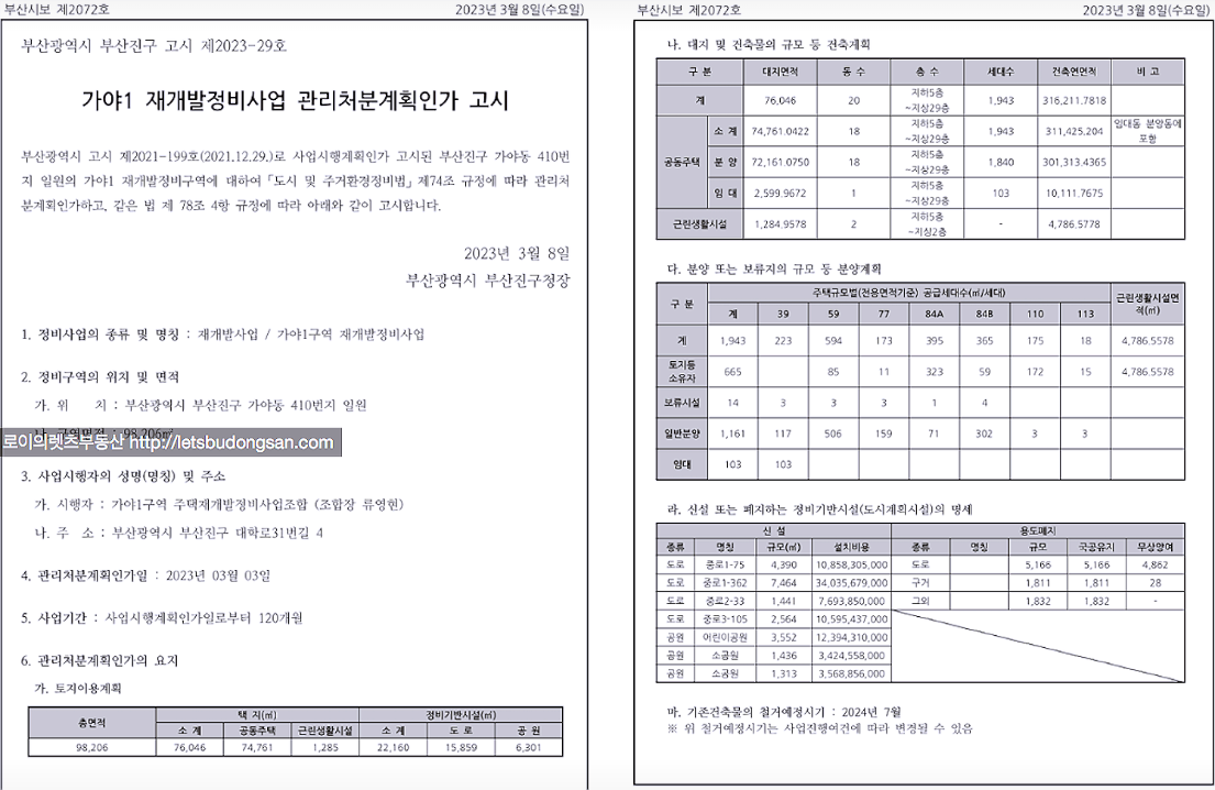 가야1구역 재개발 현재까지 주요 진행 사항 그리고 이후 일정 정리등 추가 정보는 아래 페이지를 참고 부탁드립니다.