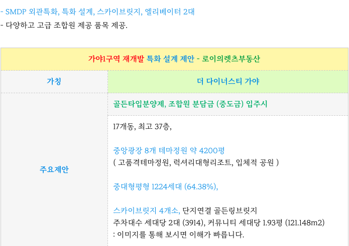 철거 앞둔 가야1구역 재개발 시공사의 추가 특화 제안 부분 간략히 정리하였습니다.