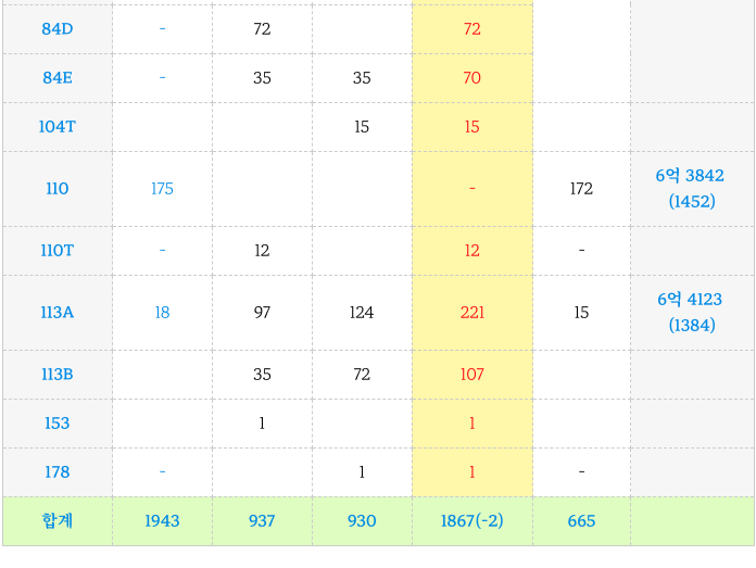 전체 세대수는 조금 감소하였고 중대형 평형 세대수는 증가하였습니다.