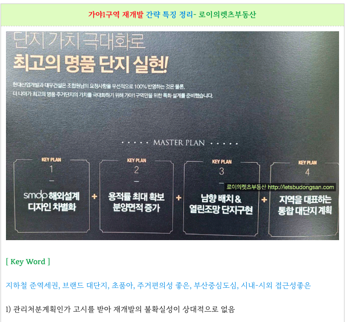 가야1구역 재개발 주요 입지적 특징 다시 한번 정리하였습니다.