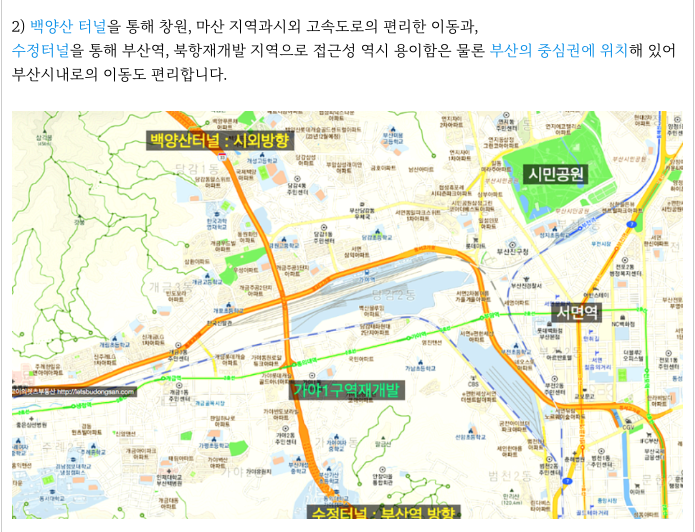 - 부산중심도심, 수정터널, 백양산터널 시내외 이동 교통환경 좋은