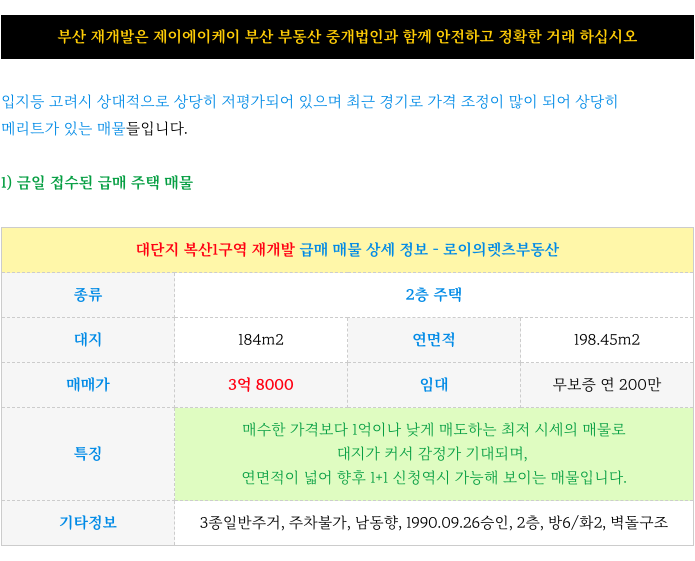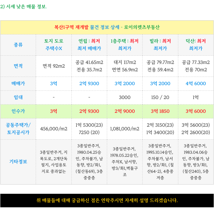 부산 경남 건물 토지 상가 주택 등 부동산 물건 투자 및 물건 접수 받습니다.