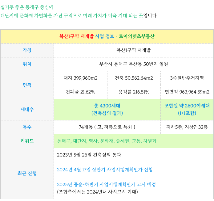 부산 동래구 복산1구역 재개발 - 주택 급매 & 구역 소개