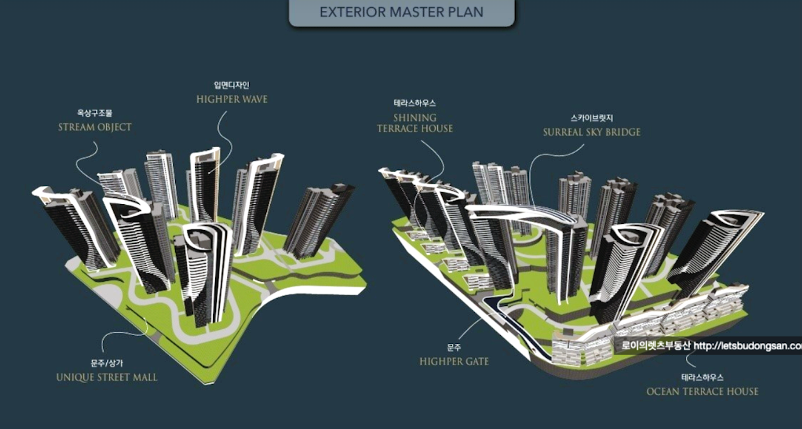 스카이브릿지, 커튼월룩, 오션테라스, 특화조경등 아름다운 바다와 어울리는 특화설계를