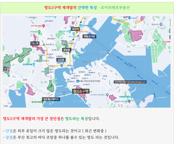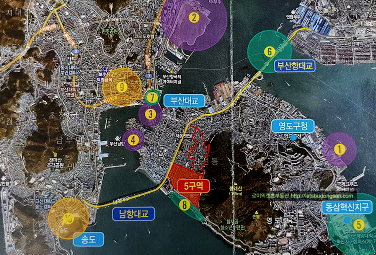 바다조망 영도5구역 재개발 주요 입지적 특징을 다시한번 간략 정리하였 습니다.