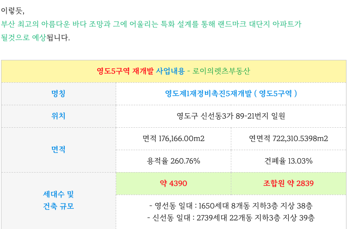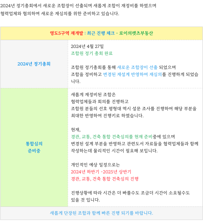 영도5구역 재개발 초기부터 현재까지 주요 일자별 진행 사항 소개등 추가 정보는 아래 페이지를 참고 부탁드립니다.