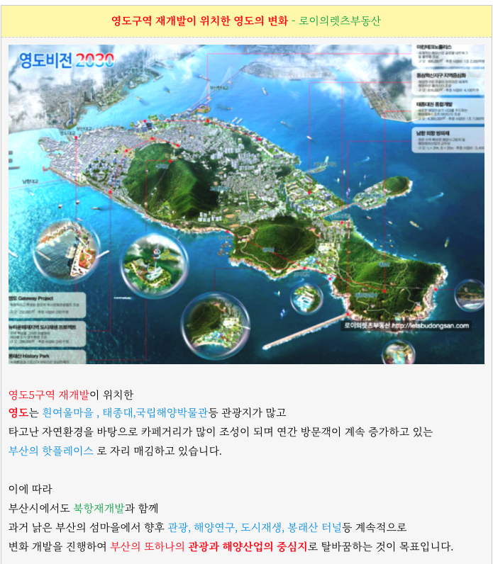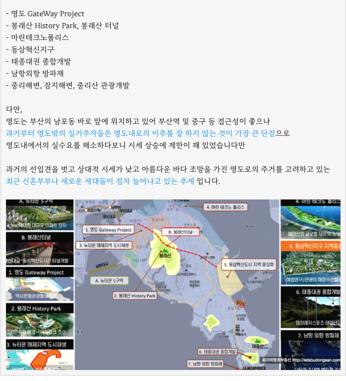 영도의 현 개발 계획들과 변화에 대해 소개 드리겠습니다.