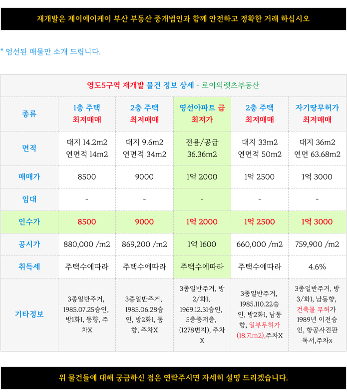 (급매) 영도5구역 재개발 영선1.2 및 주택 최저 급 매물