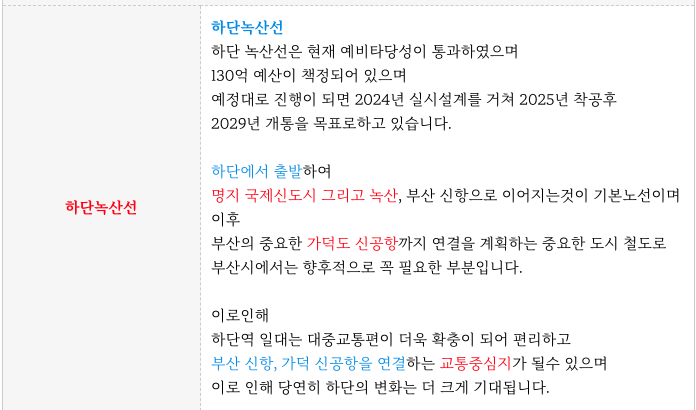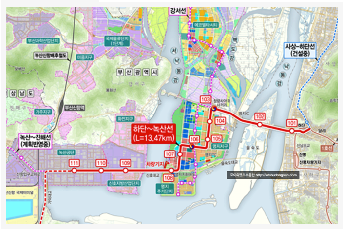 3) 하단녹산선은 하단에서 명지와 녹산까지 그리고 향후 가덕도 신공항까지 연결되수 있어 중요한 도시 철도로 현재 예비타당성이 통과된 상태 이며