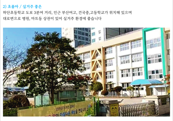 하단초등학교 도보 3분에 위치하고 있으며 인근으로도 많은 학교 있고