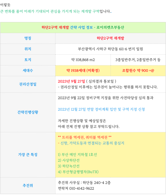 부산 재개발 부분에 대해 궁금하신 사항은 방문 또는 연락주시면 자세히 설명 드리겠습니다.
