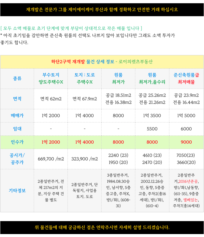 하단2구역 재개발 소액 투자 매물들 엄선하여 소개 드립니다.
