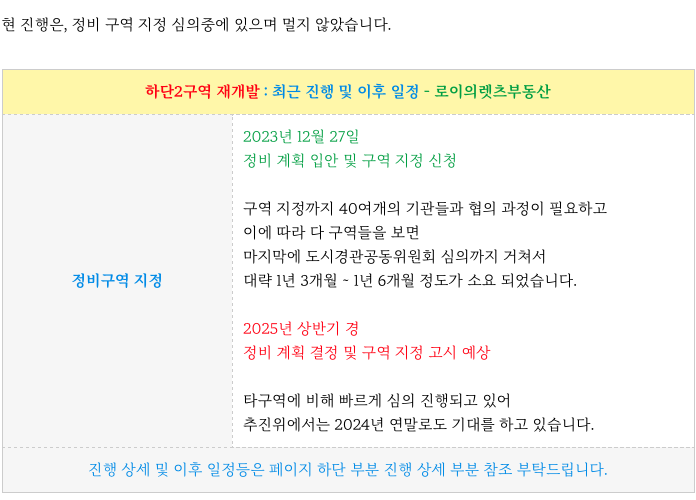 하단2구역 재개발 : 소액 매물 & 구역 특징, 진행 일정