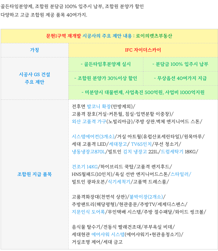 문현1구역 재개발 시공사 주요 제안 부분 소개하여 드리곘습니다.