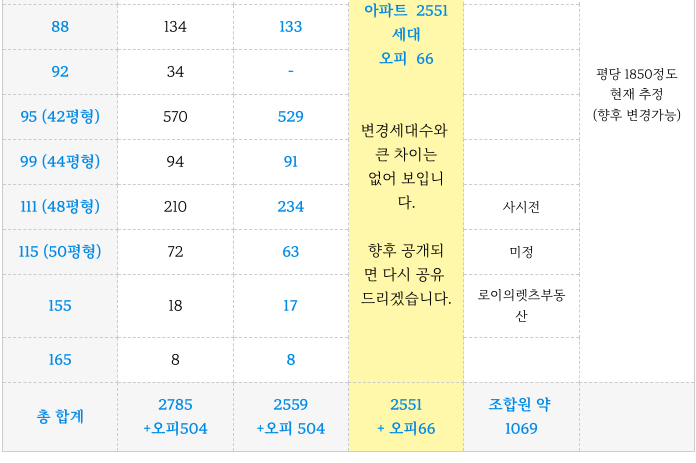 문현1구역 재개발 현재 계획된 타입별 세대수 정리 소개 드립니다.