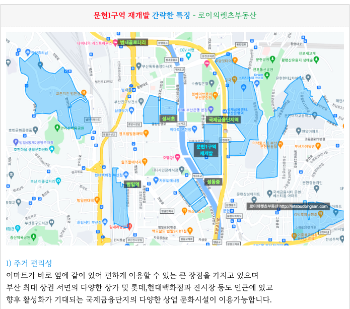 문현1구역 재개발 입지적 주요 특징을 다시 한번 간략 정리하였습니다.