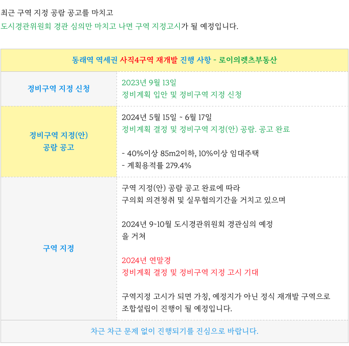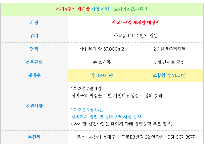 사직4구역 재개발 주요 진행 사항과 이후 예상 일정 소개등 추가 정보는 아래 페이지를 참고 부탁드립니다.