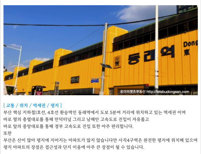 동래역 주변 일대는 향후로도 더욱 크게 기대가 되는 곳임은 분명합니다.