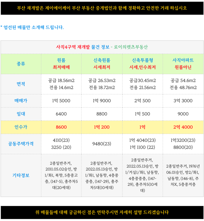 사직4구역 재개발 현 가능 소액 매물 정리하였습니다.