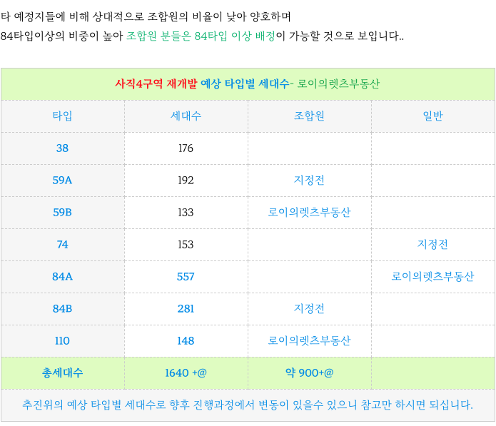 사직4구역 재개발 계획 타입별 세대수 소개해 드리곘습니다.