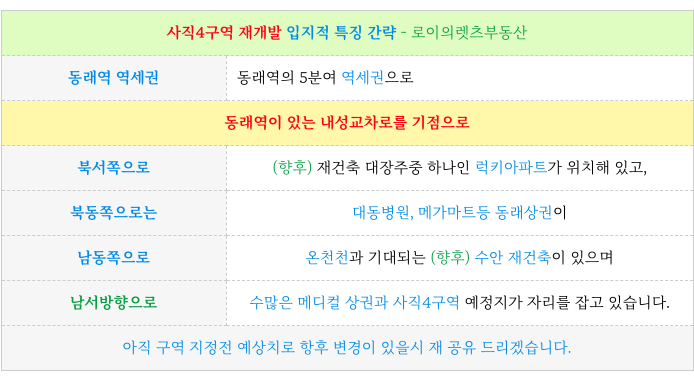 (부산재개발) 동래역 사직4구역 : 구역지정공람완료 & 소액 매물