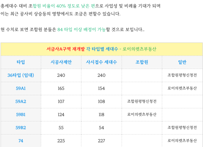 역세권 서금사A구역 계획 타입별 세대수 정리하였습니다.