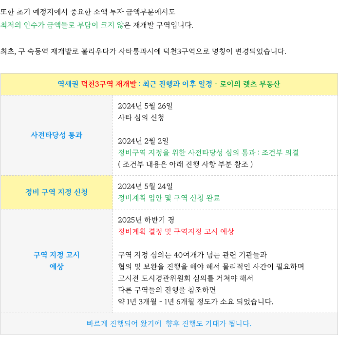 덕천3구역 현재까지의 주요 진행과 향후 일정 등 추가 정보는 아래 페이지를 참고 부탁드립니다.