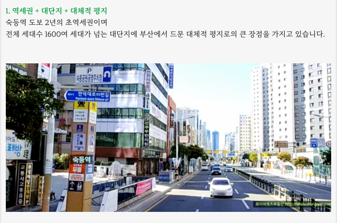 부산 지하철 3호선 숙등역 바로 앞에 둔 역세권으며