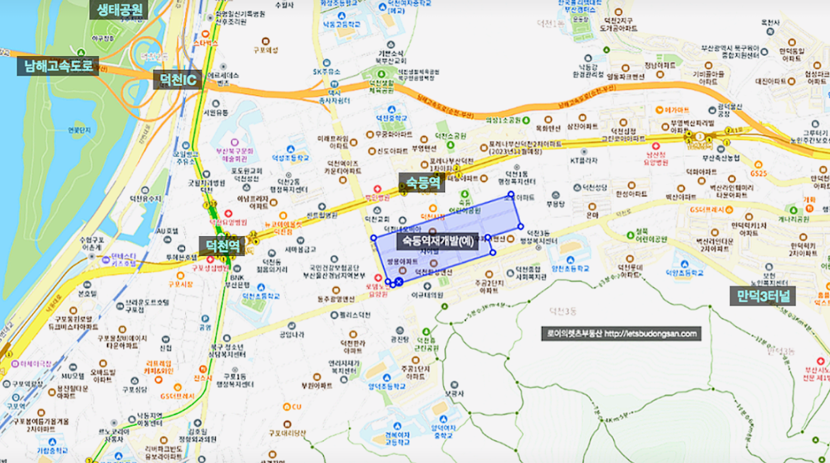 - 교통 편리 ( 남해고속도로, 만덕3터널 ).