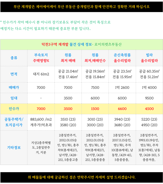 부산 전역 재개발에 대해 궁금하신 사항은 방문 또는 연락주시면 자세히 설명드리겠습니다.