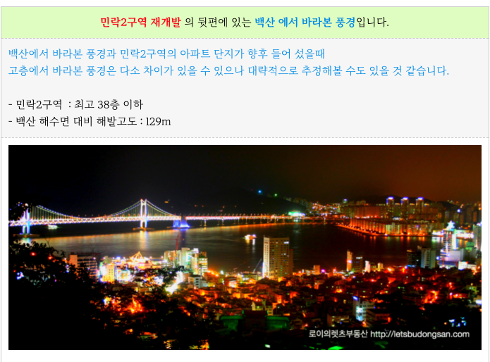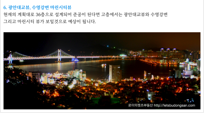 수영구 민락2구역 향후 단지가 들어섰을때의 조망 부분 간략 설명 드립니다.