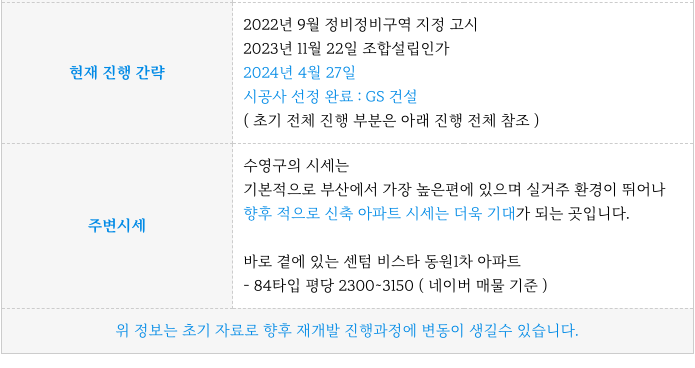 사시준비중인 민락2구역 진행 소식과 일정 그리고 소액 매물 소개해 드리겠습니다.